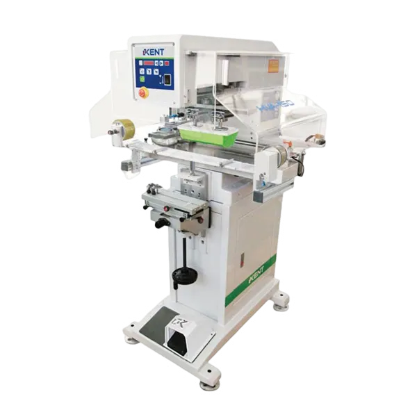 La impresora KENT /HVA-150/SCMIC es una máquina de tampografía de un solo color, con movimiento lateral de la copa de tinta y operada neumáticamente, diseñada para ofrecer una impresión precisa y eficiente. Su estructura de aluminio fundido garantiza una base resistente y duradera para un rendimiento óptimo en la producción.