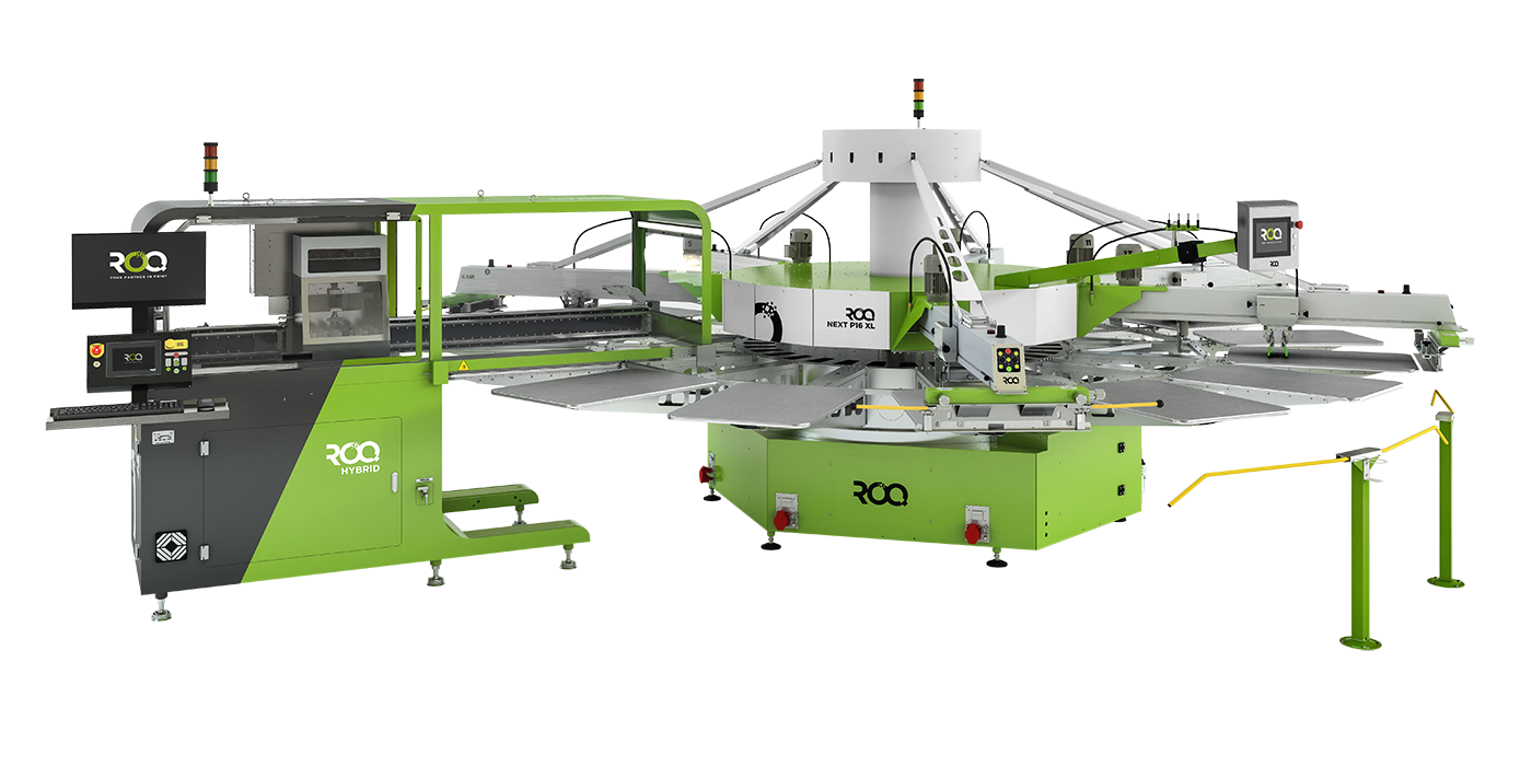 La ROQ Hybrid, que requiere una máquina de serigrafía ovalada para funcionar, permite que el método de serigrafía, tradicionalmente más rápido, se encargue de las tareas que suelen llevar más tiempo, dejando todo el color a cargo de la impresión digital, que ofrece una gama de colores más amplia y más opciones de resolución que simplemente no se pueden encontrar en la serigrafía.
