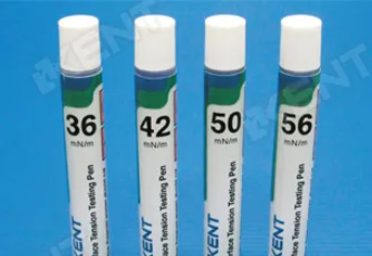 Los marcadores de tensión superficial KENT son herramientas esenciales para garantizar la calidad y eficacia de tus procesos de pretratamiento. Con estos marcadores, puedes medir con precisión la tensión superficial de las superficies a tratar, lo que te permite ajustar y optimizar tus pretratamientos para obtener resultados óptimos en tus procesos de impresión.