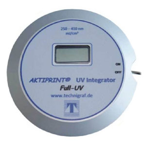 Descubre el instrumento de medición UV AKTIPRINT Full-UV, diseñado para proporcionar un control continuo de la energía de irradiación presente (dosis UV) y la potencia de irradiación (intensidad UV) de tus secadores UV. Este medidor de 13 mm plano es una herramienta esencial para garantizar la calidad y consistencia en tus procesos de curado UV.